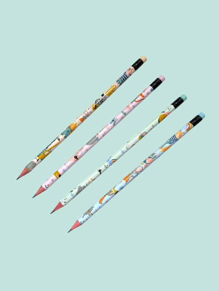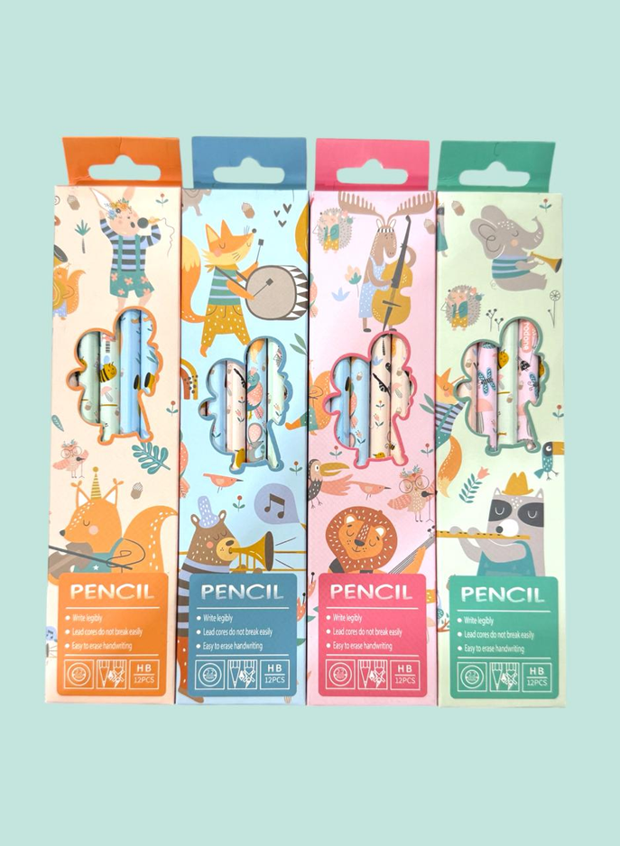 12 Lápices Grafito Infantil Animalios