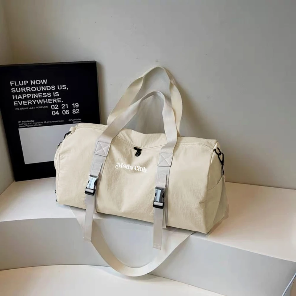 (Cuenta con 3 bolsillos internos, un bolsillo trasero, un bolsillo lateral, un compartimiento para zapatos e incluye correa larga).