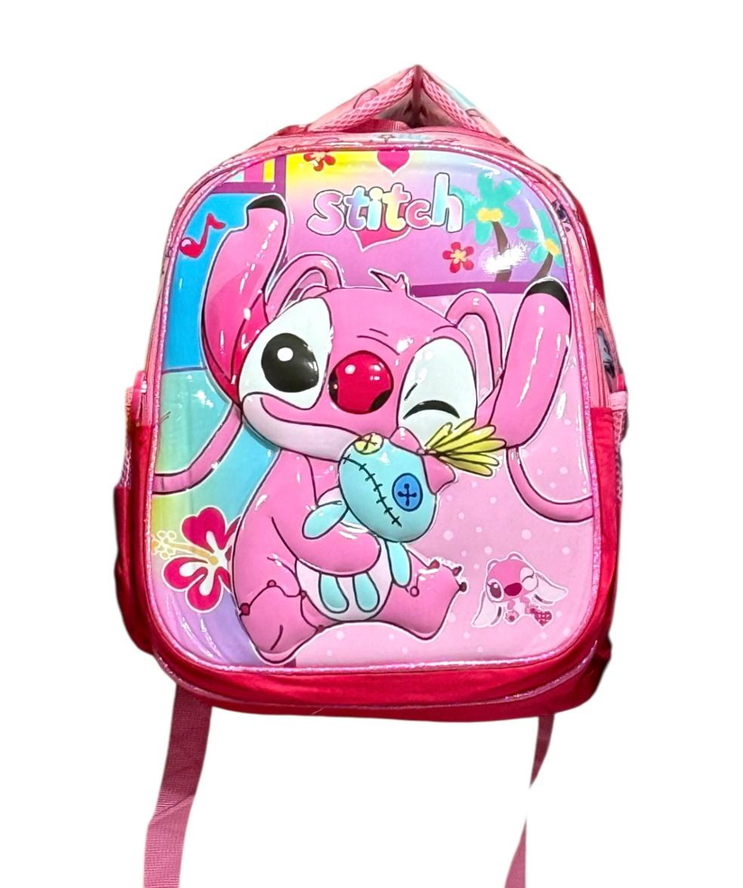 Mochila 2Pisos Con Relieve Infantil Stitch Rosa
