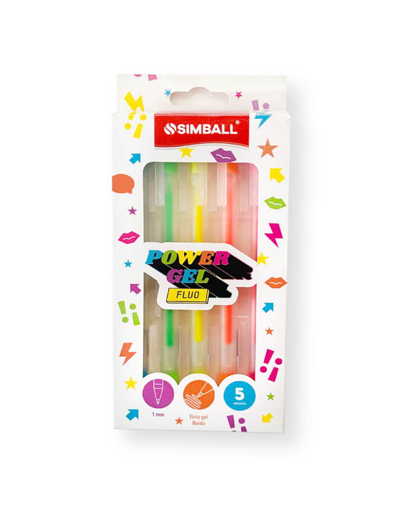 5 Lapiceras Fluo Power Gel Simball