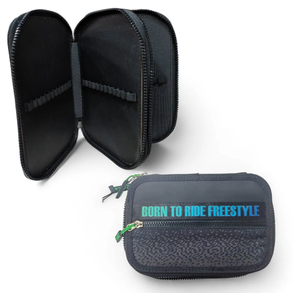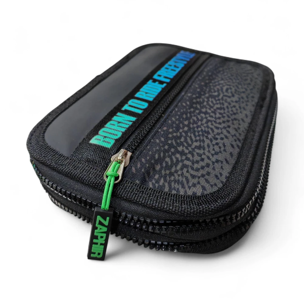 Viene con con tres cierrer y 3 compartimientos para guardado. Uno mas fino y otros dos para guardar lapices o lapiceras. De color negra ideal para el colegio y tener todo organizado.