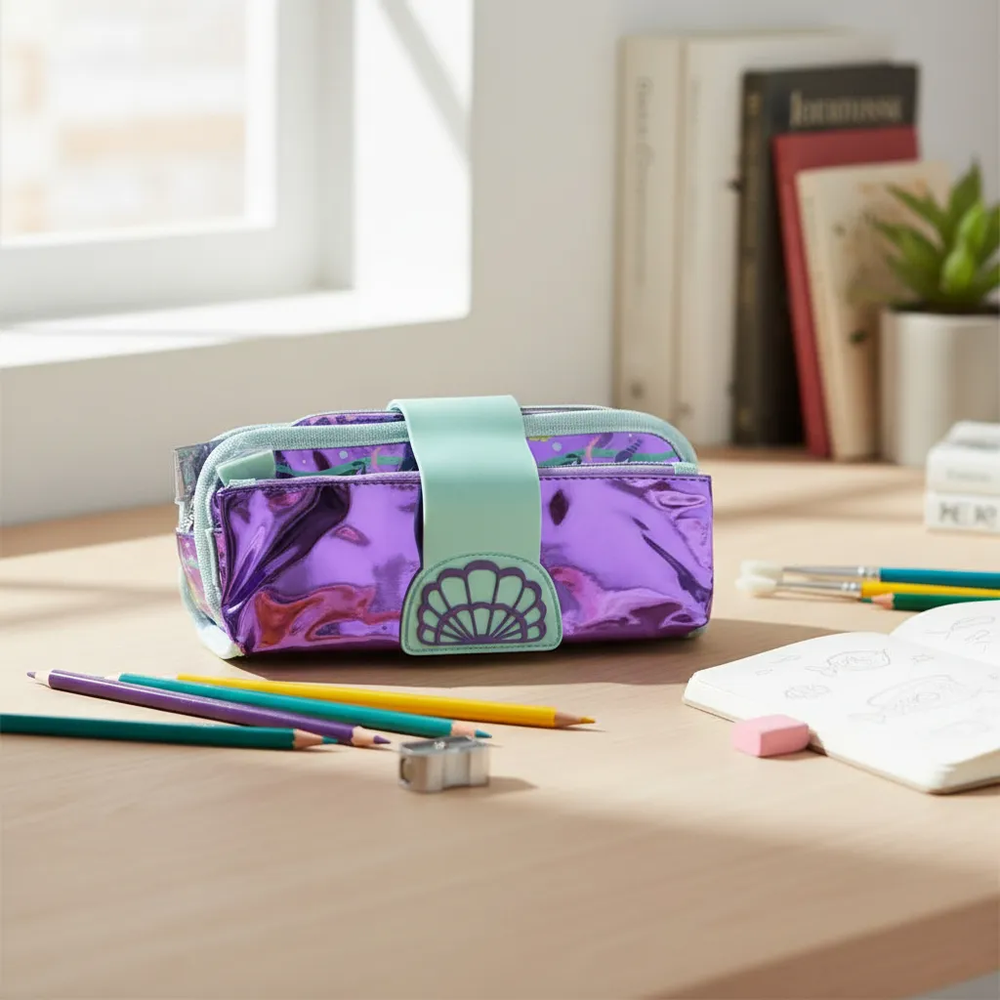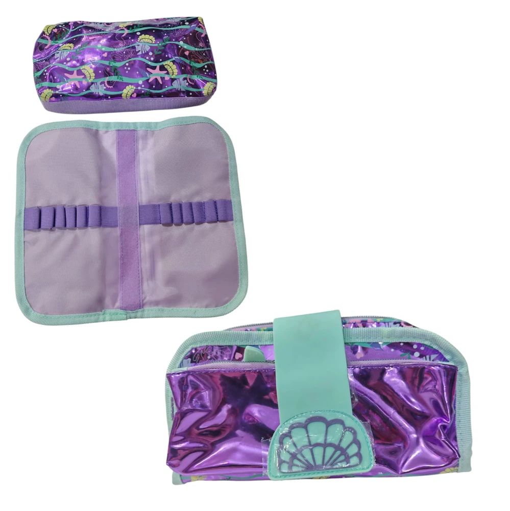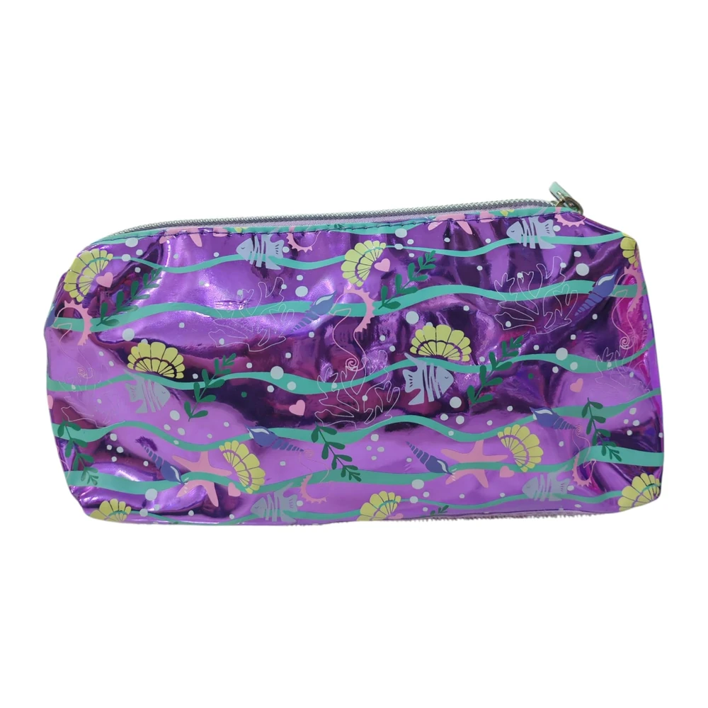 Cartuchera tematica marina, contiene una bandas elasticas para colocar lapices o lapiceras y tener todo en orden. Tiene dos cierres y una parte de la cartuchera es desmontable ideal para simular tener dos.