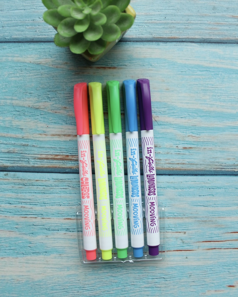 Descubre la experiencia de escribir con estilo y delicadeza con los Marcadores Mooving Microfibras Infinitos Iluminosos. Este juego incluye 5 marcadores de colores fluo y iluminosos que transformarán tus notas y dibujos en obras de arte sutiles.