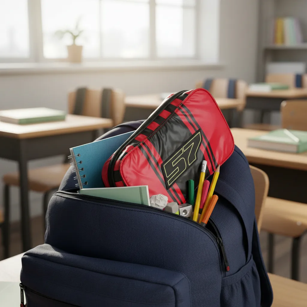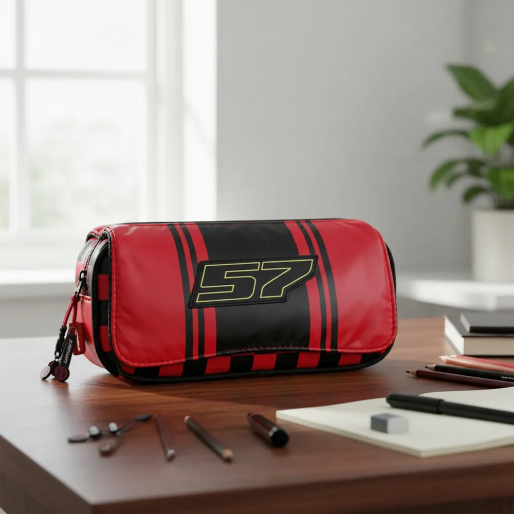 Cartuchera Zaphir Race 57 combina diseño deportivo con gran capacidad. Fabricada en poliéster resistente, cuenta con dos compartimentos independientes que permiten organizar lápices, fibrones, reglas, corrector y más sin mezclar todo. Su estética “racing” con detalles en contraste la hace ideal para chicos y adolescentes que buscan algo distinto y duradero para el colegio.