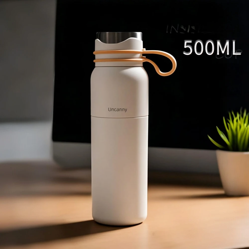 (Botella térmica de 500ml de acero inoxidable, especial para colocar tus bebidas frías o calientes, de larga duración, cuenta con manija para poder llevarla cómodamente . Vienen varios colores).