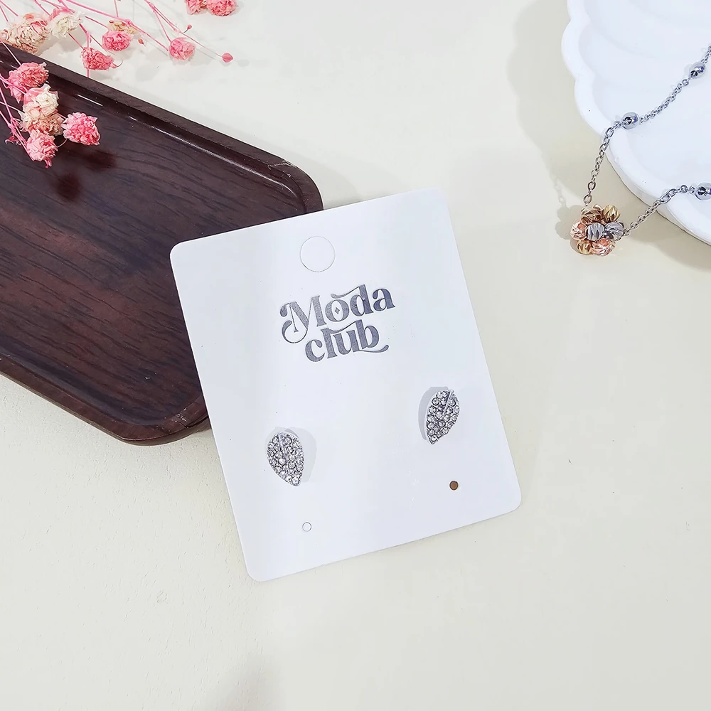 (Pack x12 Blister Aritos en forma de hojas con strass, super delicados. Ideales para poder tener en variedad para ciertas ocasiones).