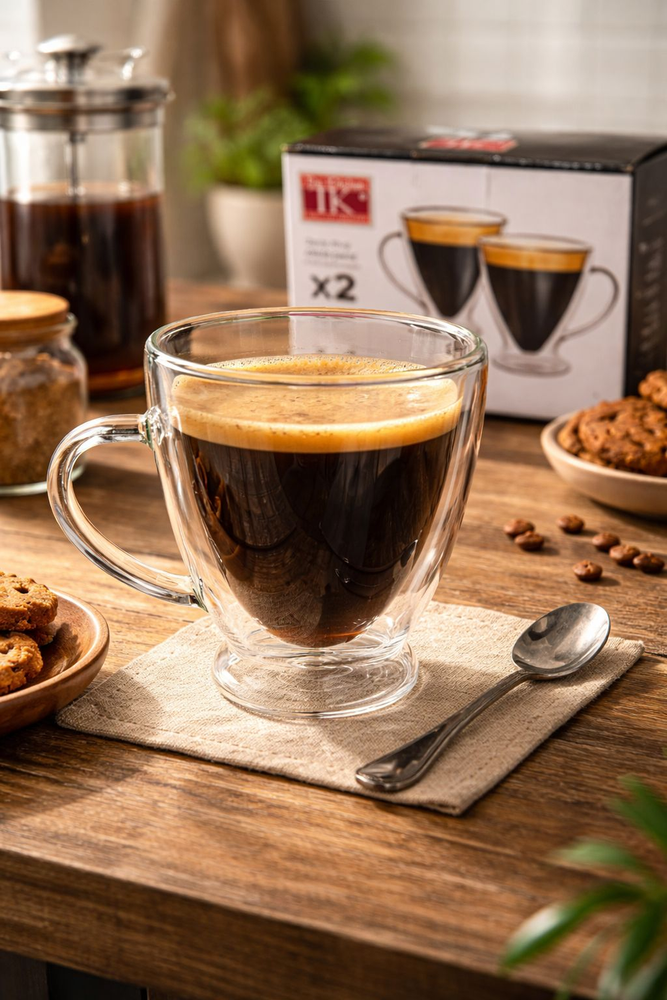 Pack x2 jarros mug vidrio doble pared 160cc