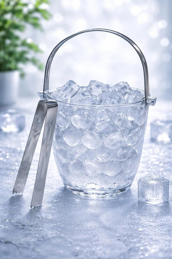 Hielera de vidrio con manija y pinza de metal, capacidad: 850c.c aprox , medidas 14,7cm x 12cm x 12,5 cm