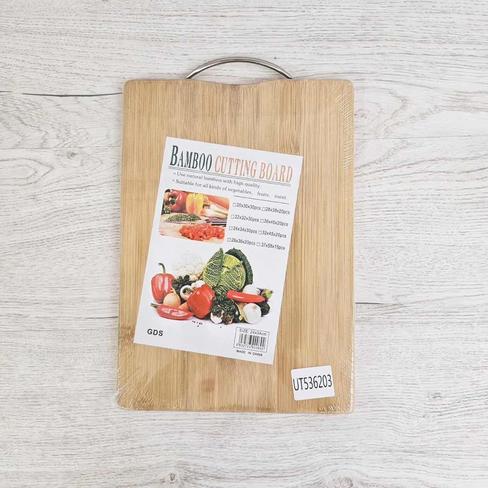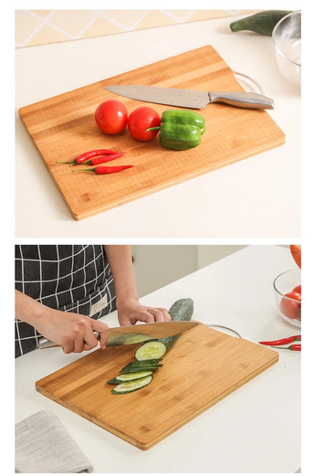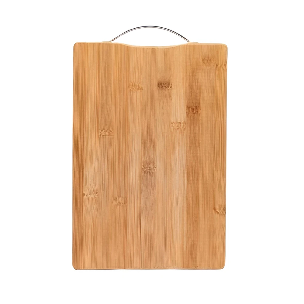 (Tabla de picar o para picadas de forma rectangular y cuenta con manija de acero para poder agarrarla o colgarla).