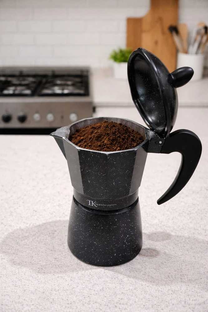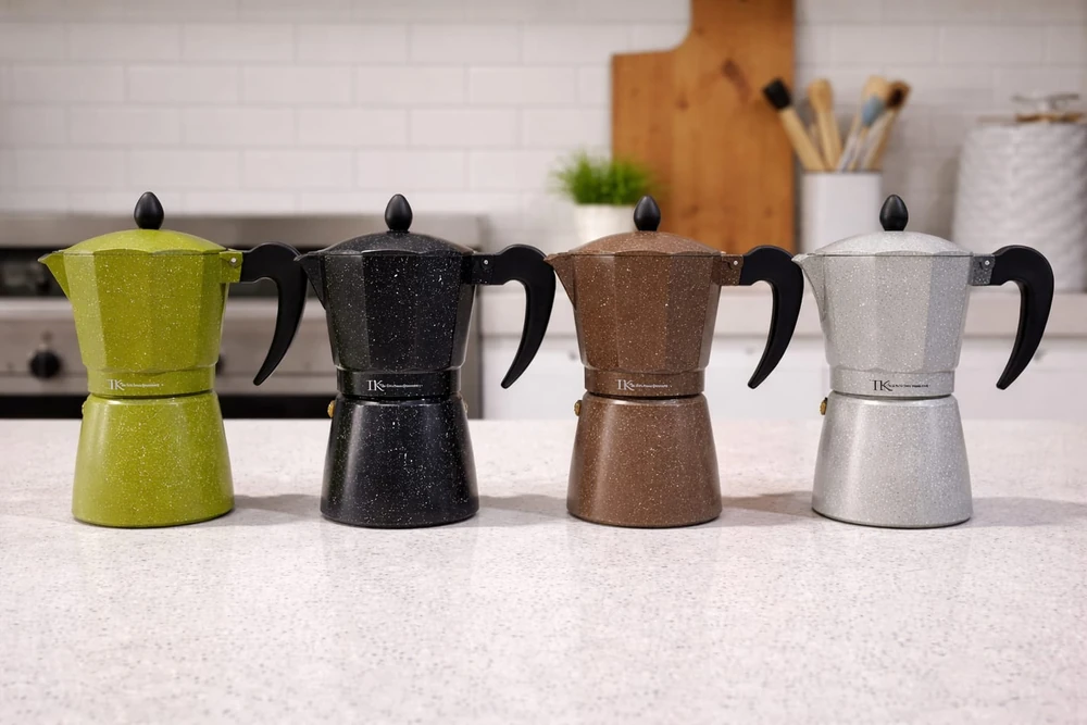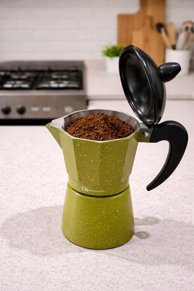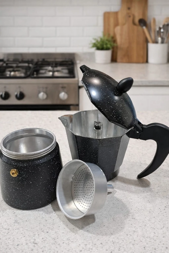 Cafetera Americana, material de (aluminio) para 6 pocillos, capacidad de 300 c.c aprox. Altura 17cm